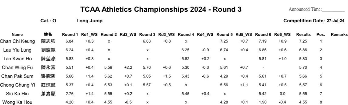 TCAA Athletics Championships 2024 - Round 3 (07/27/2024)